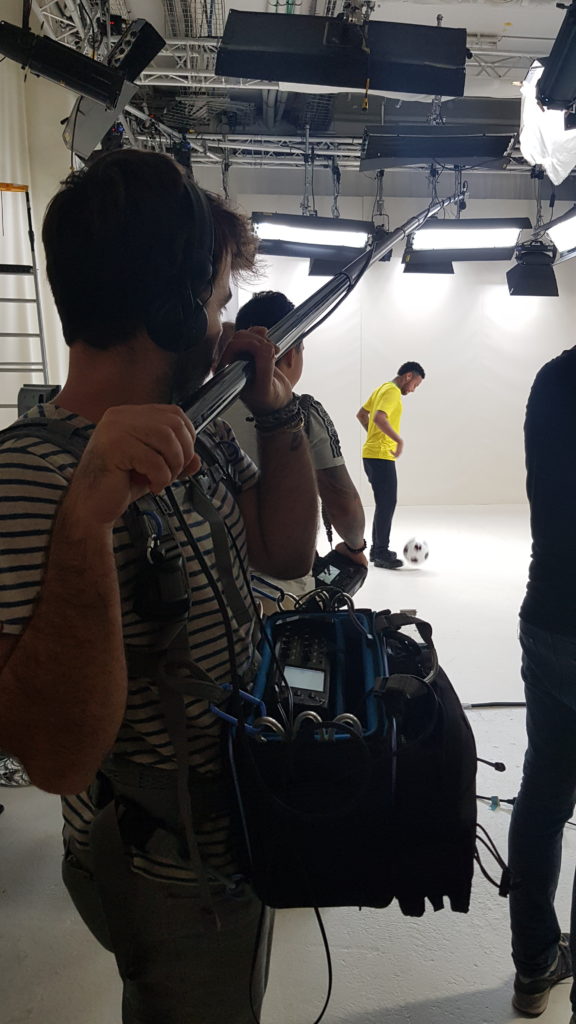 La création d’ambiances sonores et de bruitages est réalisée sur le site du tournage et en studio.